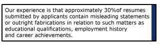 vital aspects of the candidates background : Education, Employment, Driving records,